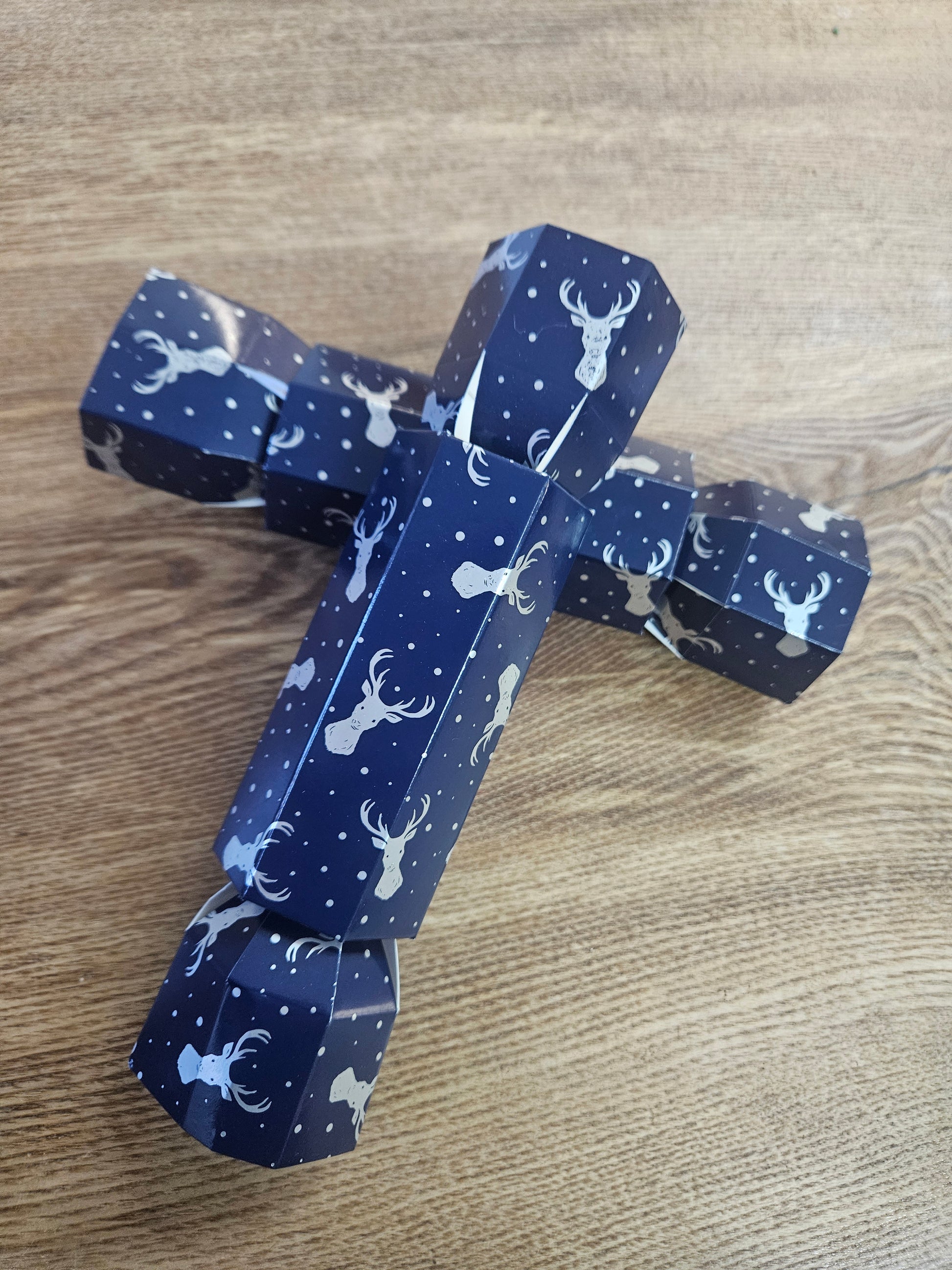 Christmas crackers filled with milk chocolate hazelnut praline santa & white chocolate hazelnut praline snowman